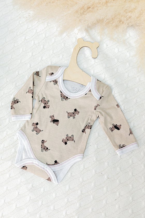 Боди для новорожденных выполнено из интерлока с набивным рисунком. Длинные рукава помогут сохранить тепло в прохладные дни. За счет застёжек-кнопок в нижней части и удобному крою горловины, переодевание малыша будет удобным. Бейка в цвет основного полотна на горловине, рукавах и по низу придает изделию завершенный вид. Такое боди идеально подойдет для повседневного использования, мягкий и нежный интерлок обеспечит комфорт для кожи малыша.