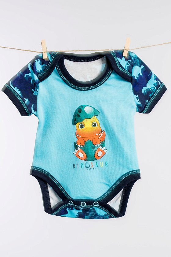 Боди из интерлока. Короткий рукав, снизу застёжка на кнопки. Спереди нанесён принт.