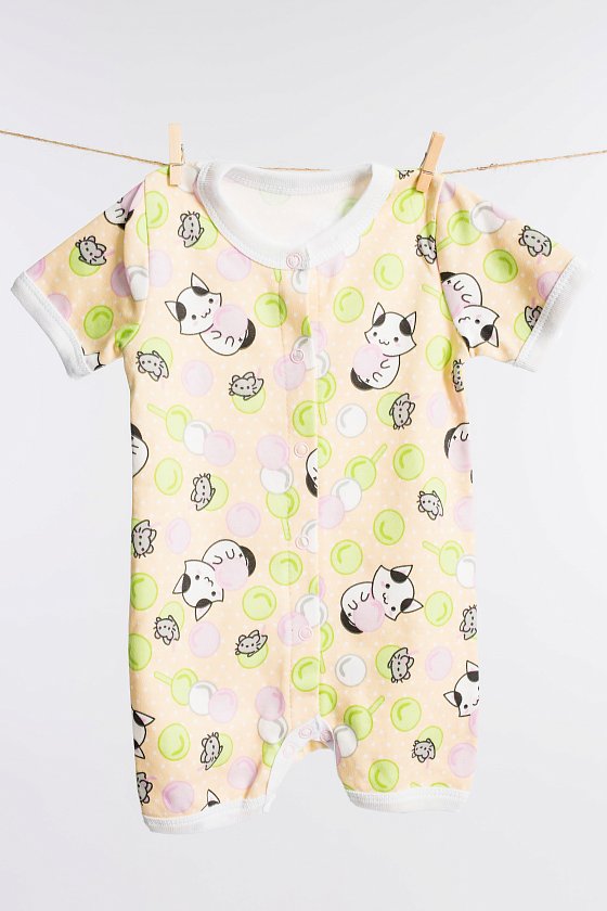 Песочник из интерлока с набивным рисунком. С коротким рукавом. "Ножки" и центральная застёжка на кнопках.