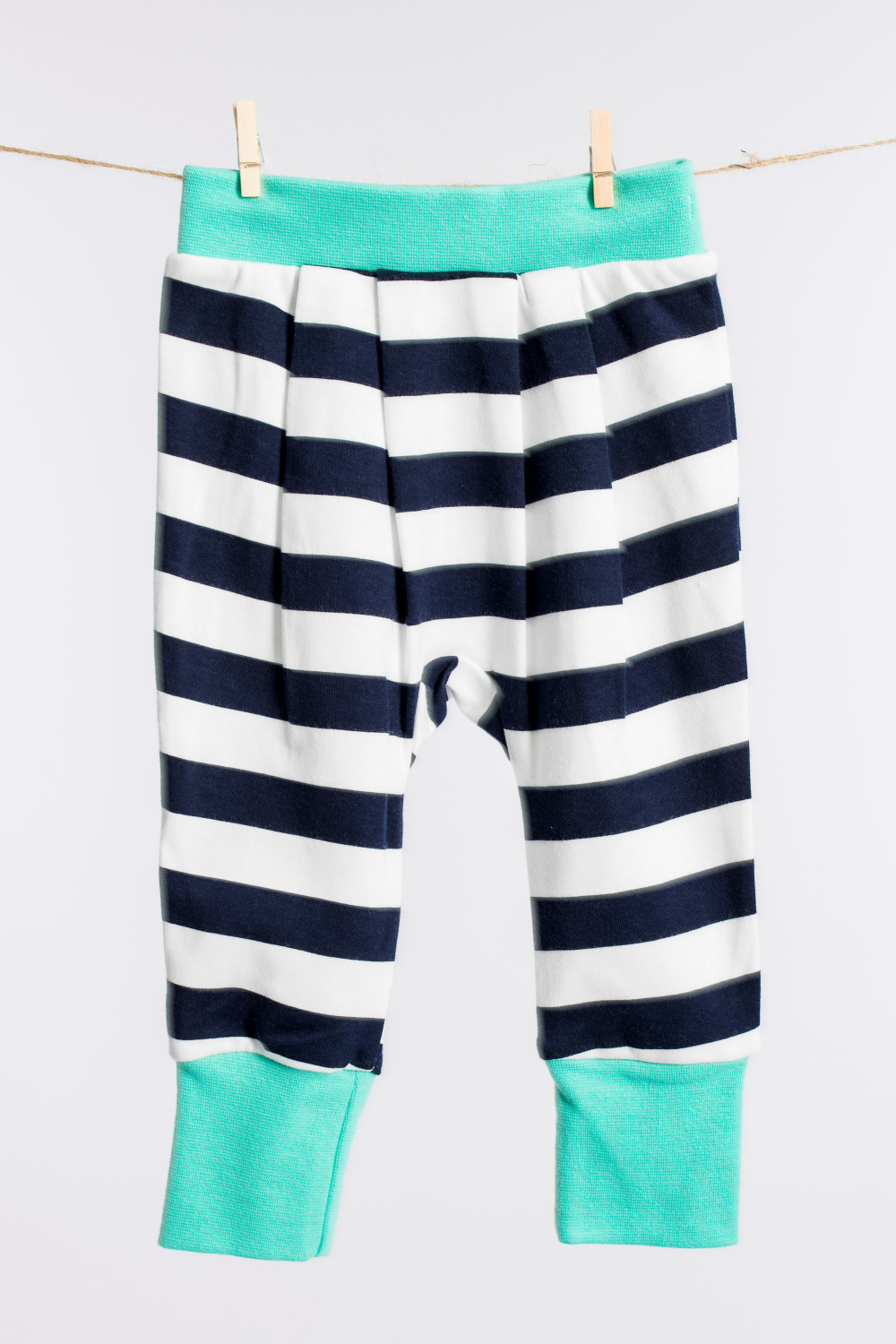 Брючки для самых маленьких выполнены из хлопка, внизу с отворотом, по поясу на широкой резине.