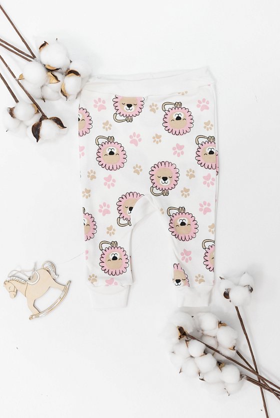 Брючки для малышей выполнены из 100% хлопкового полотна, низ брюк на манжетах, пояс отрезной с резиной внутри.