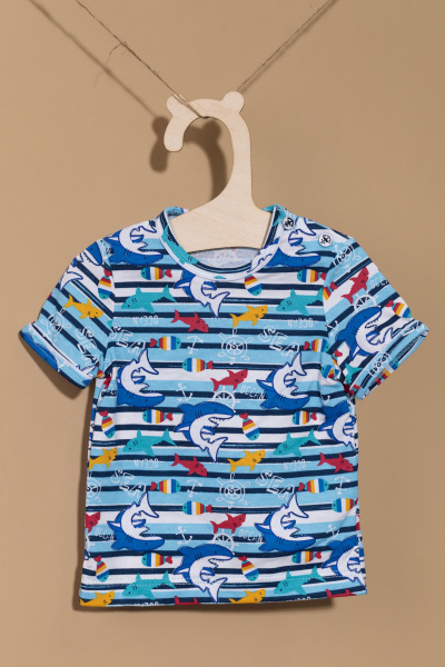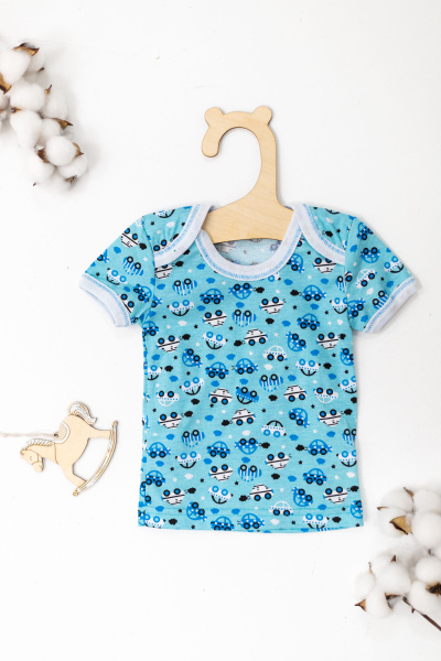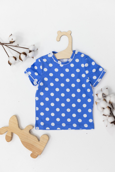 Футболка из кулирки, 100% хлопок. С коротким рукавом. На левом плече застежка на пуговицы. Горловина и низ рукавов обработаны бейкой с кантом.