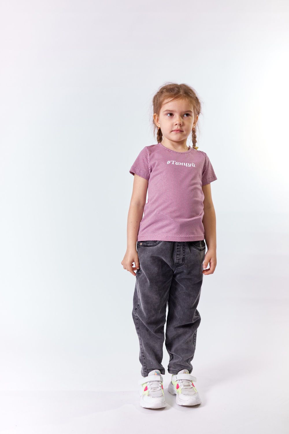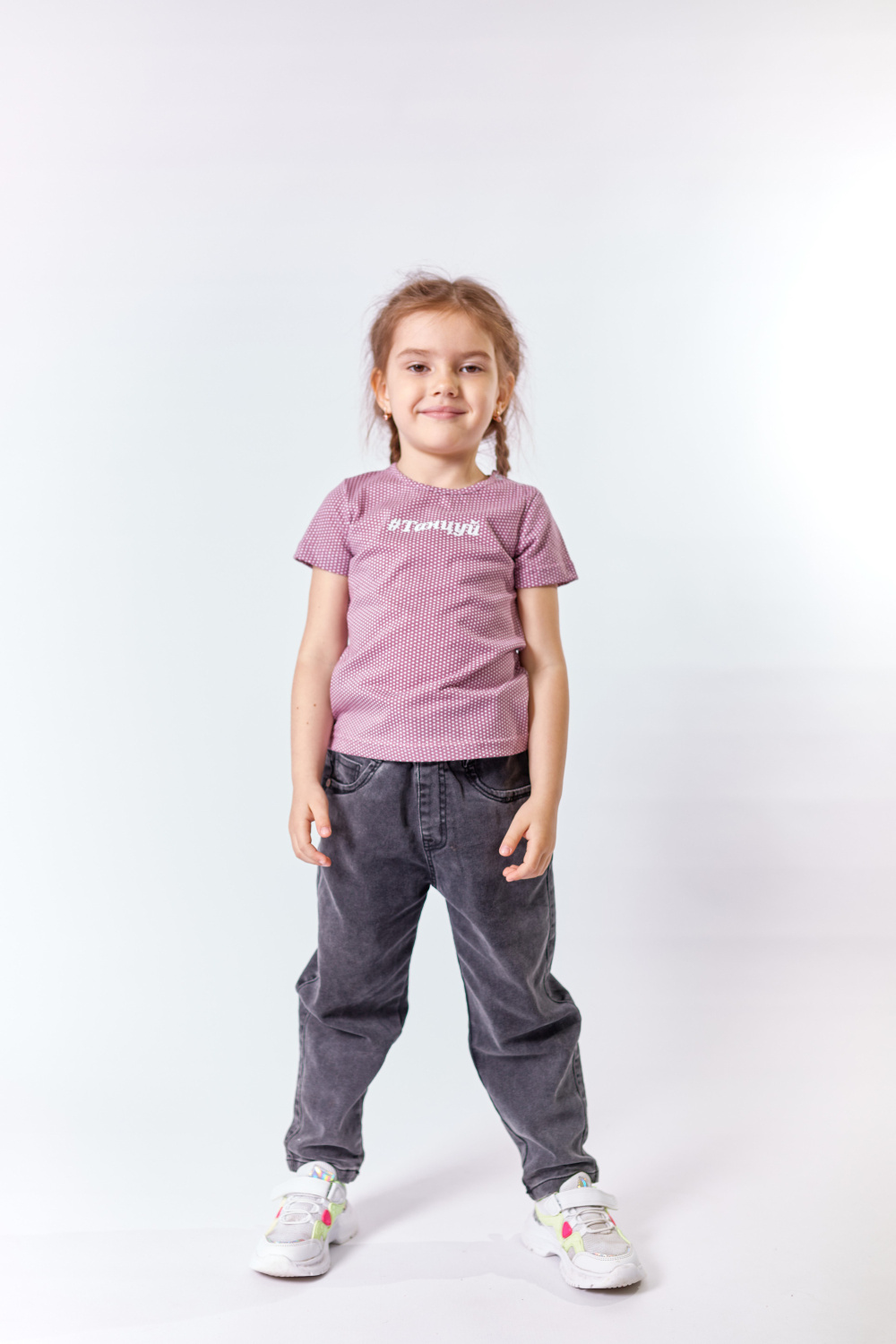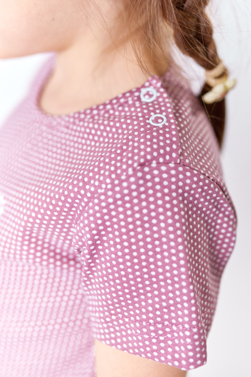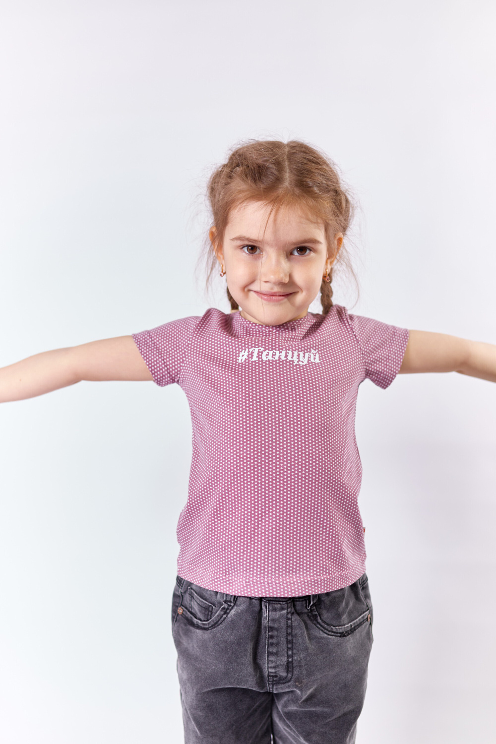 Футболка с коротким рукавом выполнена из кулирки, 100% хлопок. Застёжка на плече на кнопки. Спереди нанесён термопринт.