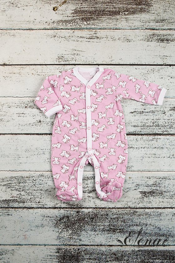 Комбинезон для малышей выполнен из хлопковой ткани с набивным рисунком. С длинными рукавами и удобной застёжкой на кнопках по всей длине изделия.