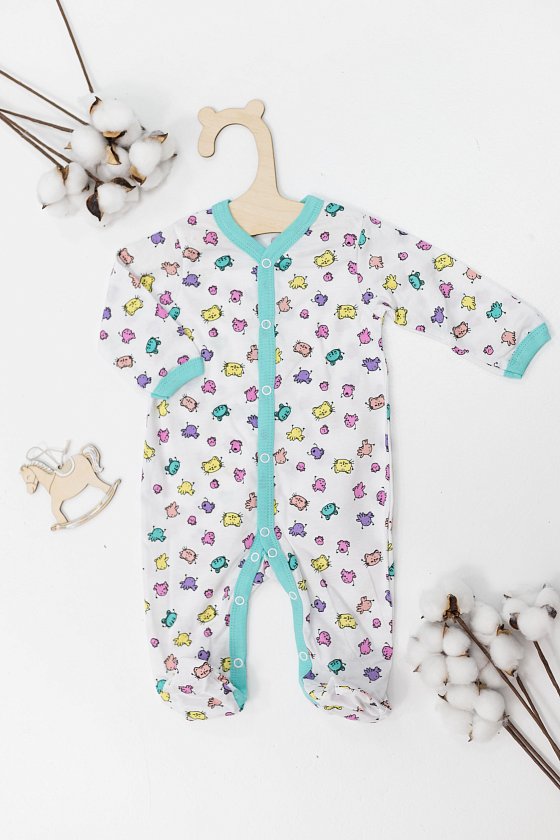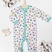 Комбинезон для малышей выполнен из хлопковой ткани с набивным рисунком. С длинными рукавами и удобной застёжкой на кнопках по всей длине изделия.