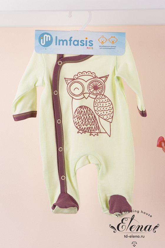 Комбинезон выполнен из интерлока. С длинными рукавами под бейку и удобной смещённой застежкой на кнопках по всей длине изделия. Спереди нанесён принт.