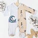 Комбинезон для малышей выполнен из хлопковой ткани с набивным рисунком. С длинными рукавами и удобной застёжкой на кнопках по всей длине изделия. Спереди нанесён принт.