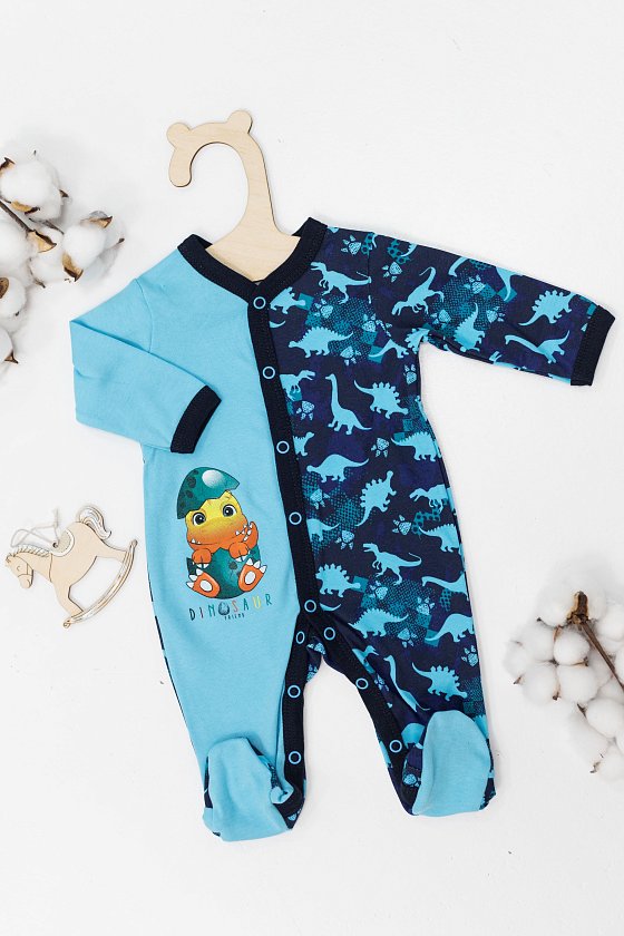 Комбинезон для малышей выполнен из хлопковой ткани с набивным рисунком. С длинными рукавами и удобной застёжкой на кнопках по всей длине изделия. Спереди нанесён принт.
