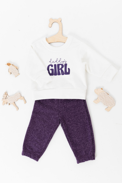 Детский костюм, выполненный из футера "воздушки" будет очаровательным и удобным для вашего малыша. Толстовка с круглой горловиной, длинными рукавами с манжетами и притачным поясом обеспечит комфорт и тепло. Принт спереди добавляет изюминку костюму. Брюки с поясом и манжетами на резинке обеспечат хорошую посадку и удобство для вашего ребенка.