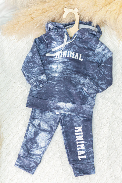Детский костюм из футера трехнитки воздушки в синем цвете представляет собой стильное и теплое сочетание для малышей.