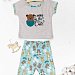 Костюм детский выполнен из интерлока. Футболка с коротким рукавом, с круглым вырезом горловины и принтом спереди. Брюки на манжете снизу и резине по поясу.