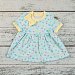 Платье выполнено из хлопкового полотна с отделкой из однотонной рибаны. Короткий рукав с манжетой, юбка отрезная, со сборками. По горловине планка из рибаны, с правой стороны пришит бант.