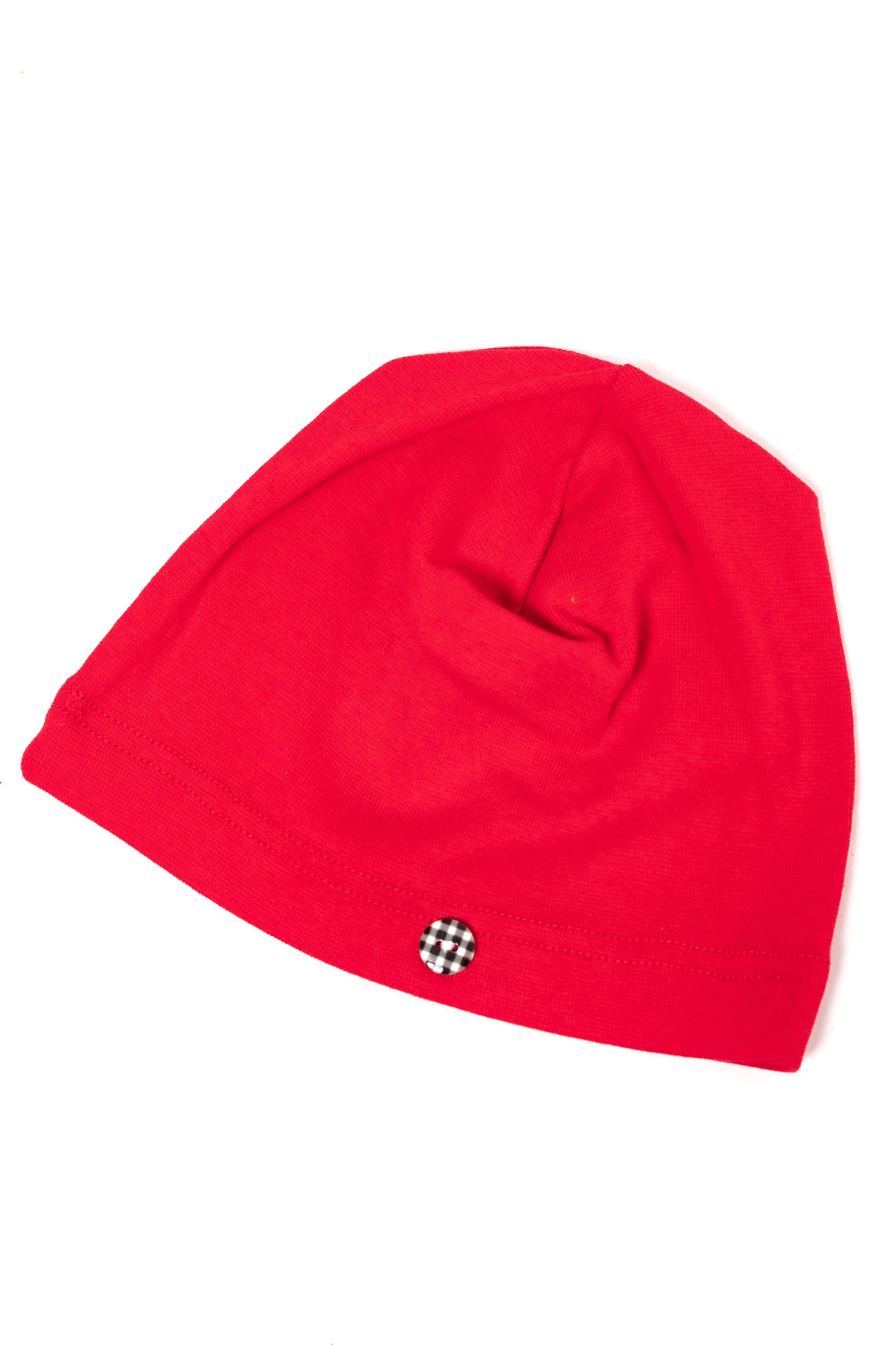 Детская шапочка из рибаны. В качестве декора сбоку пришита пуговица.