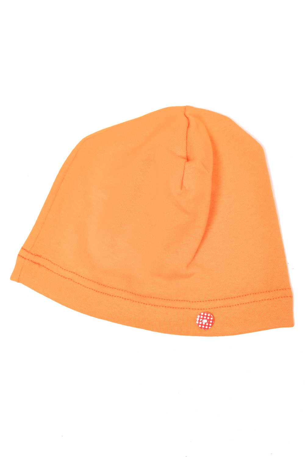 Детская шапочка из рибаны. В качестве декора сбоку пришита пуговица.