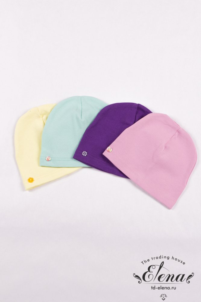 Шапочка из ткани интерлок, с подворотом и пуговицей сбоку.