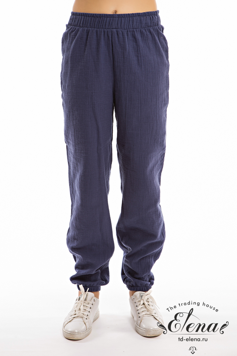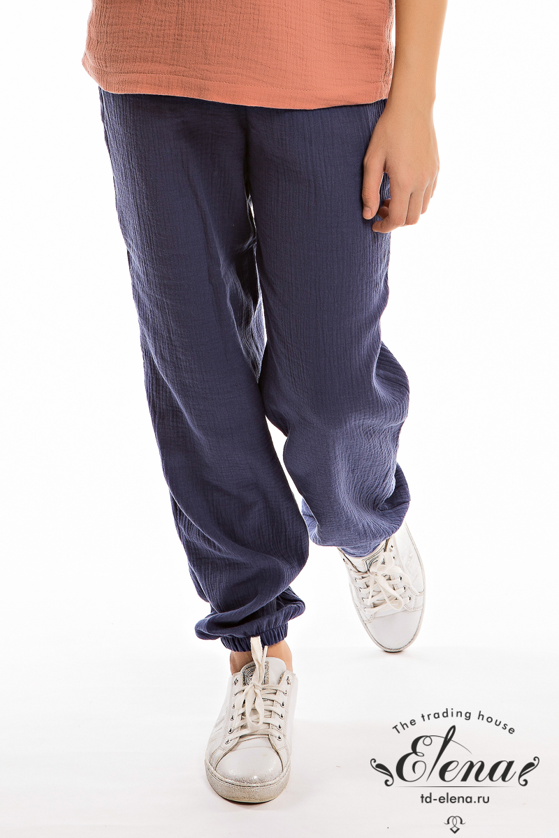 Детские летние брюки выполнены из муслина. Пояс и низ брюк на резинке.