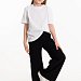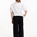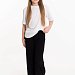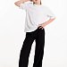 Брюки выполнены из синтетического полотна "лапша". Брюки свободного кроя, с притачным поясом и карманами по бокам.