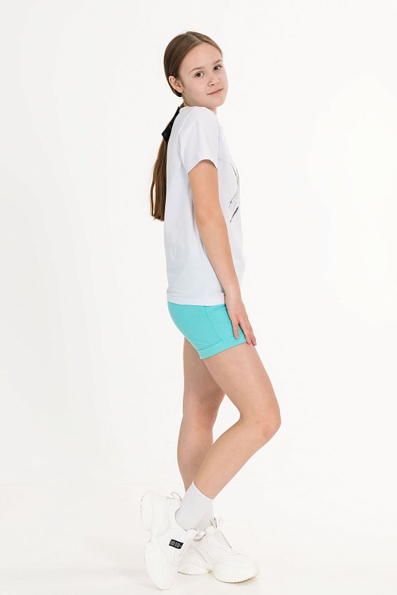 Футболка выполнена из х/б полотна с лайкрой, с коротким рукавом и круглым вырезом горловины. Спереди нанесён оригинальный принт.