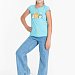 Круглый вырез горловины. Принт на полочке добавляет яркости и стиля к образу девочки.