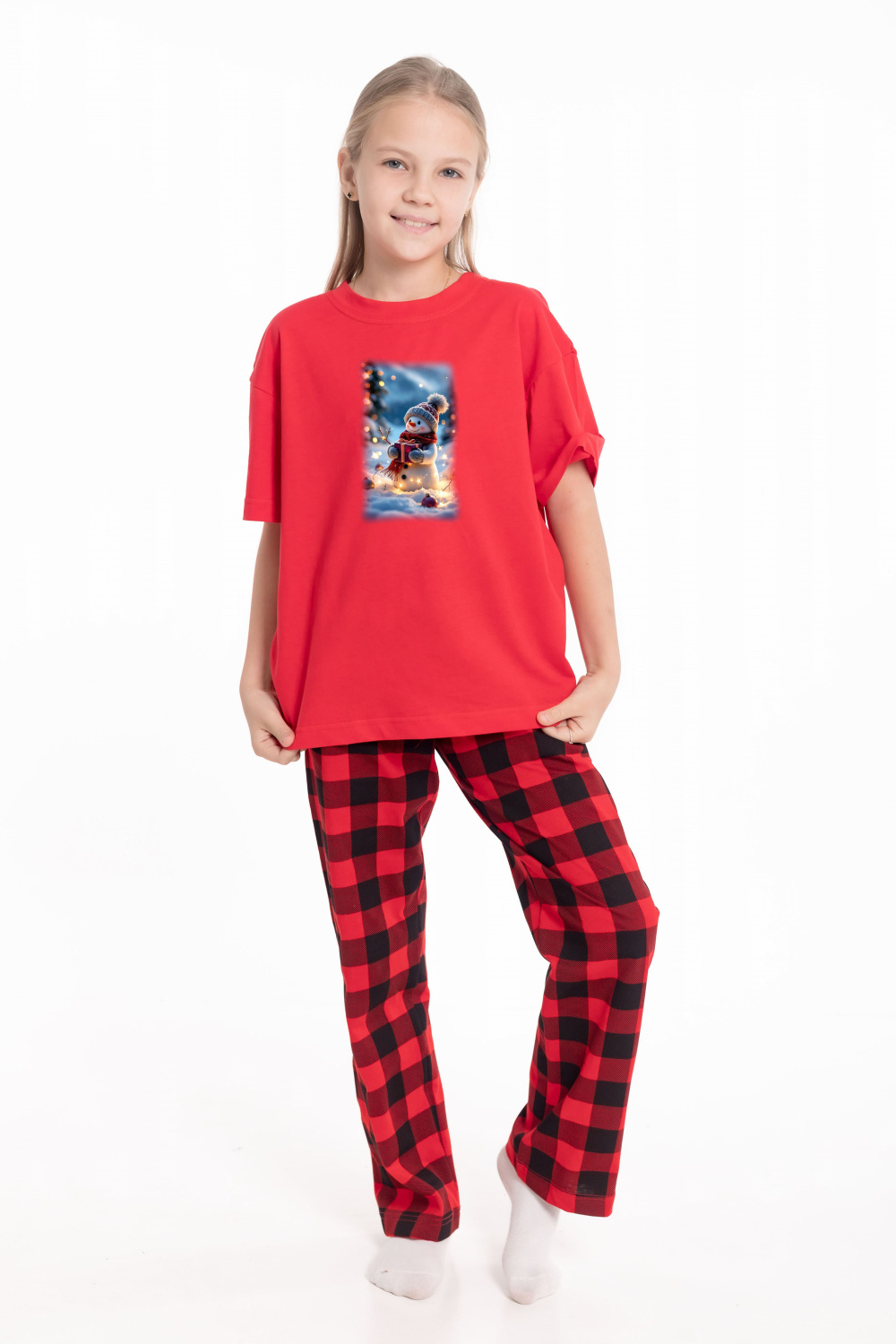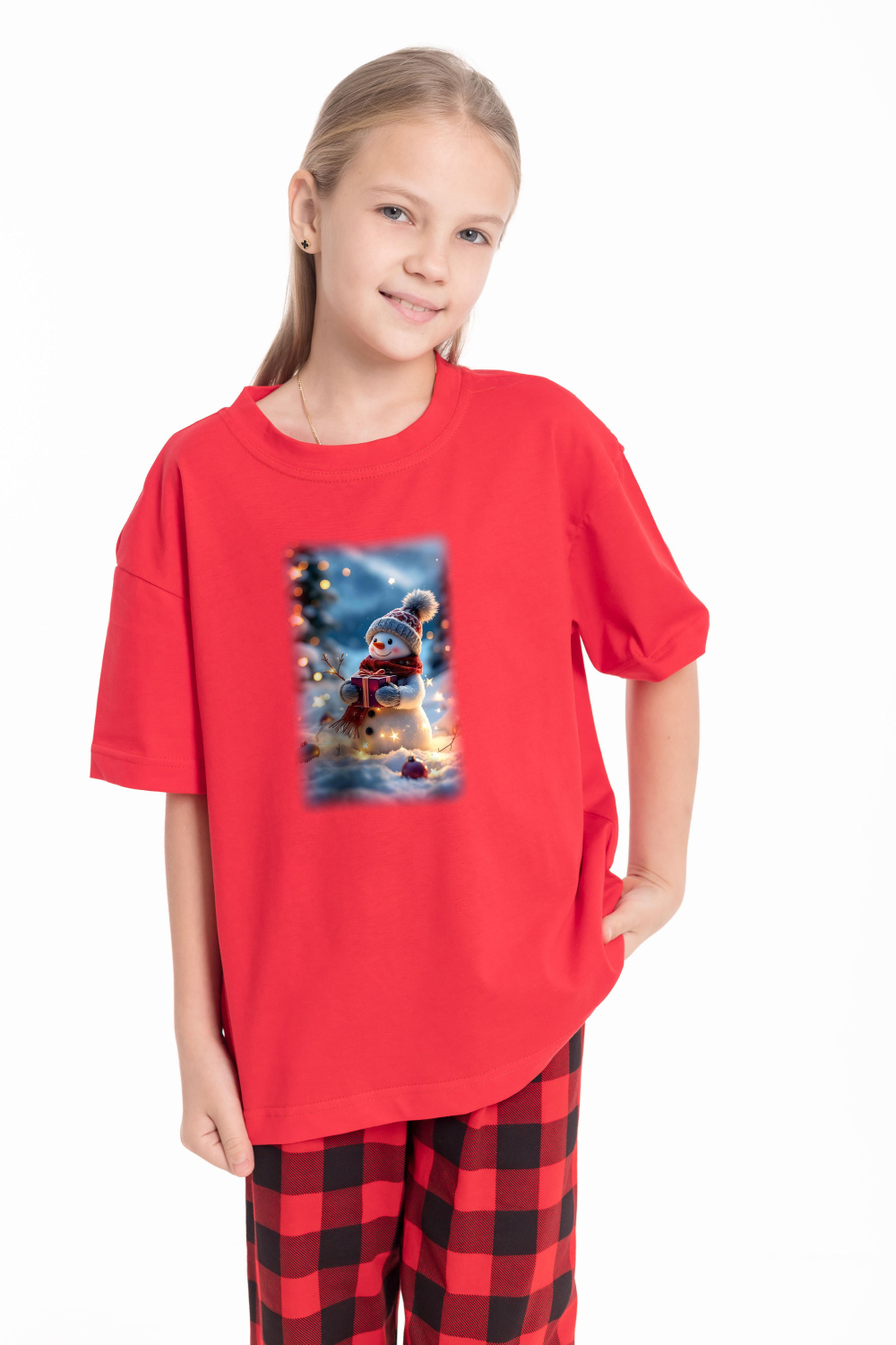 Футболка с новогодним принтом выполнена из хлопкового полотна. Материал приятен к телу, создает комфорт и хорошую воздухопроницаемость. Свободный силуэт со спущенным рукавом и круглым вырезом горловины обеспечивает удобную посадку и свободу движений. Отличный выбор для создания праздничного настроения и комфортных повседневных образов.