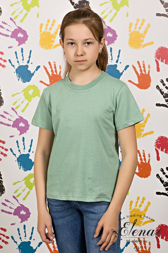 Футболка выполнена из хлопкового полотна, с коротким рукавом и круглым вырезом горловины.