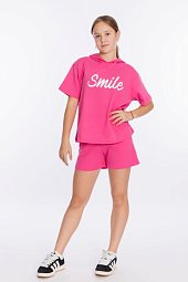 Футболка выполнена из однотонной кулирки. Вырез горловины округлый, обработан притачной планкой. Футболка с коротким втачным рукавом с отложной манжетой и красивой вышивкой спереди.