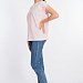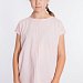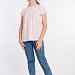 Футболка из однотонной кулирки, со спущенной линией плеча. Горловина с круглым вырезом, спереди по центру футболки три декоративных защипа.