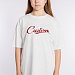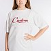 Футболка оверсайз из однотонной кулирки, 100% хлопок. С коротким рукавом и круглым вырезом горловины, оформленным планкой. Спереди нанесён принт.
