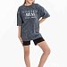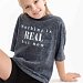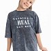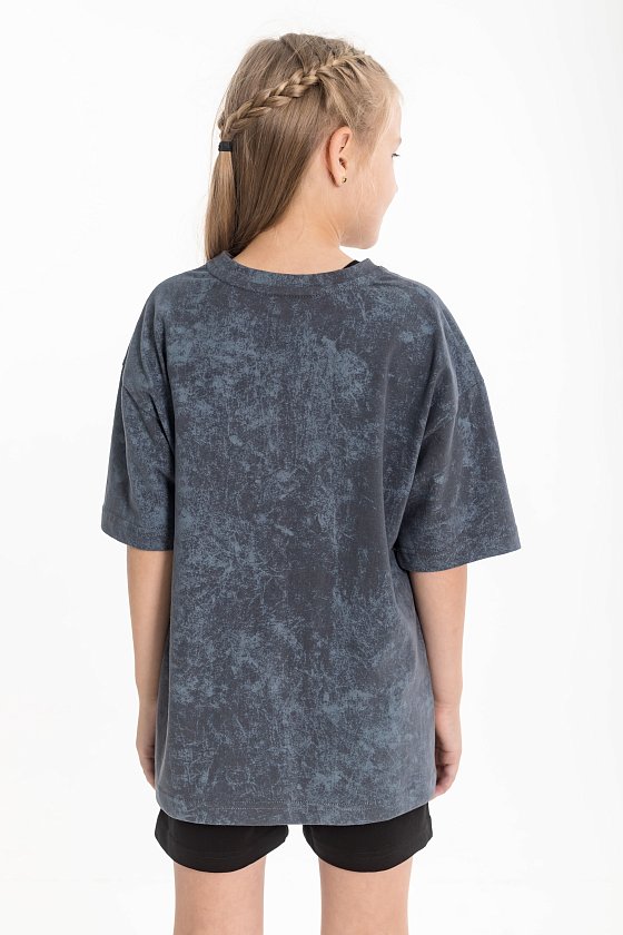 Футболка свободного кроя с круглым вырезом горловины и рукавом до локтя. Футболка выполнена из хлопкового полотна, особенностью модели является спущенная линия плеча и интересный принт спереди.