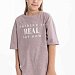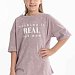 Футболка свободного кроя с круглым вырезом горловины и рукавом до локтя. Футболка выполнена из хлопкового полотна, особенностью модели является спущенная линия плеча и интересный принт спереди.