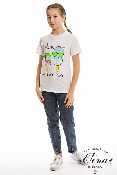 Футболка детская выполнена из х/б полотна с лайкрой. С коротким рукавом и круглым вырезом горловины. Спереди нанесён принт.