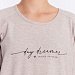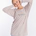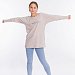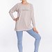 Толстовка выполнена из кулирки с лайкрой. Вырез горловины круглый, длинные рукава покроя реглан, спереди нанесён принт. Низ изделия разноуровневый, сзади длиннее, чем спереди.