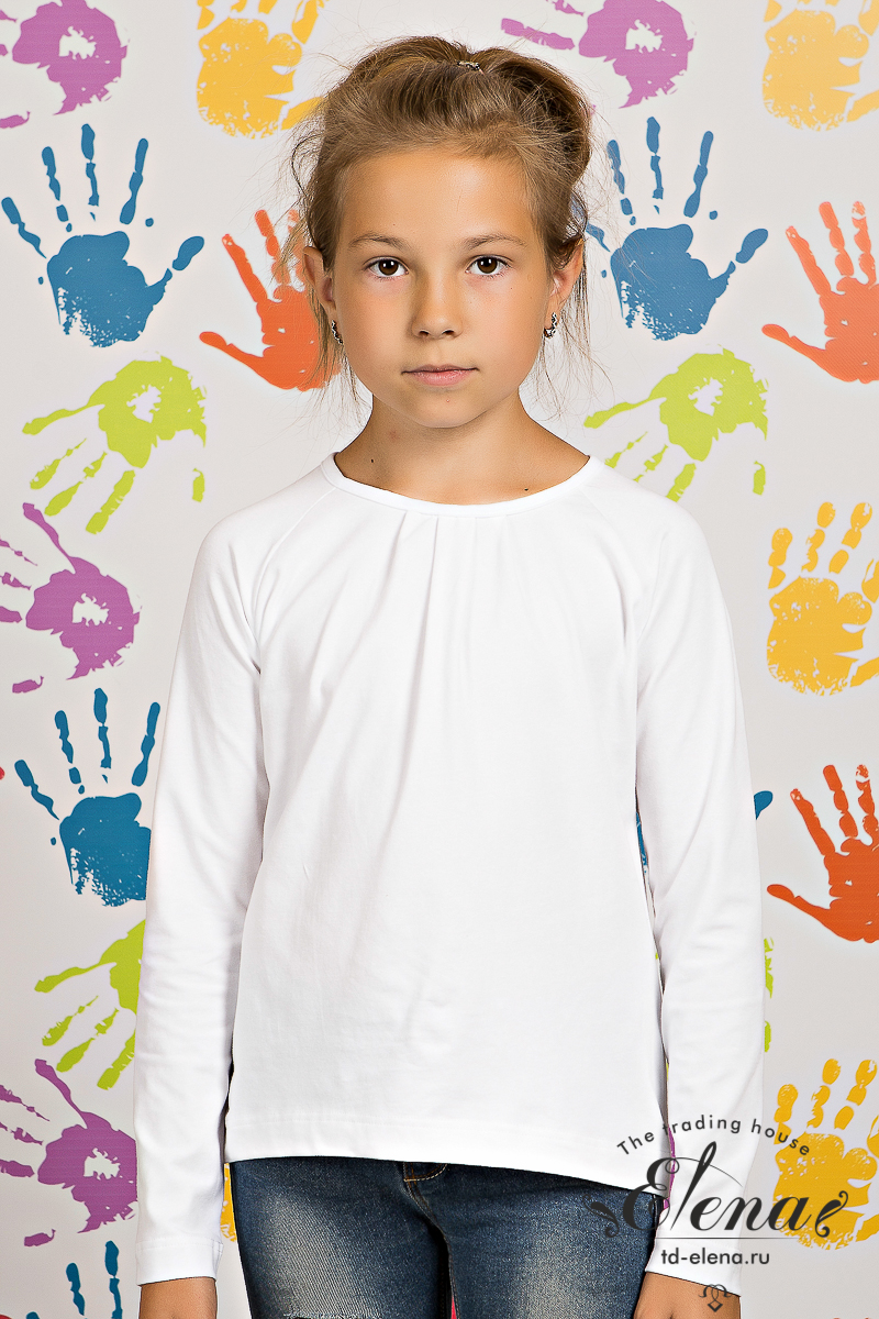 Джемпер для девочки из х/б полотна с лайкрой. Длинный рукав, декоративные защипы по круглому вырезу горловины.