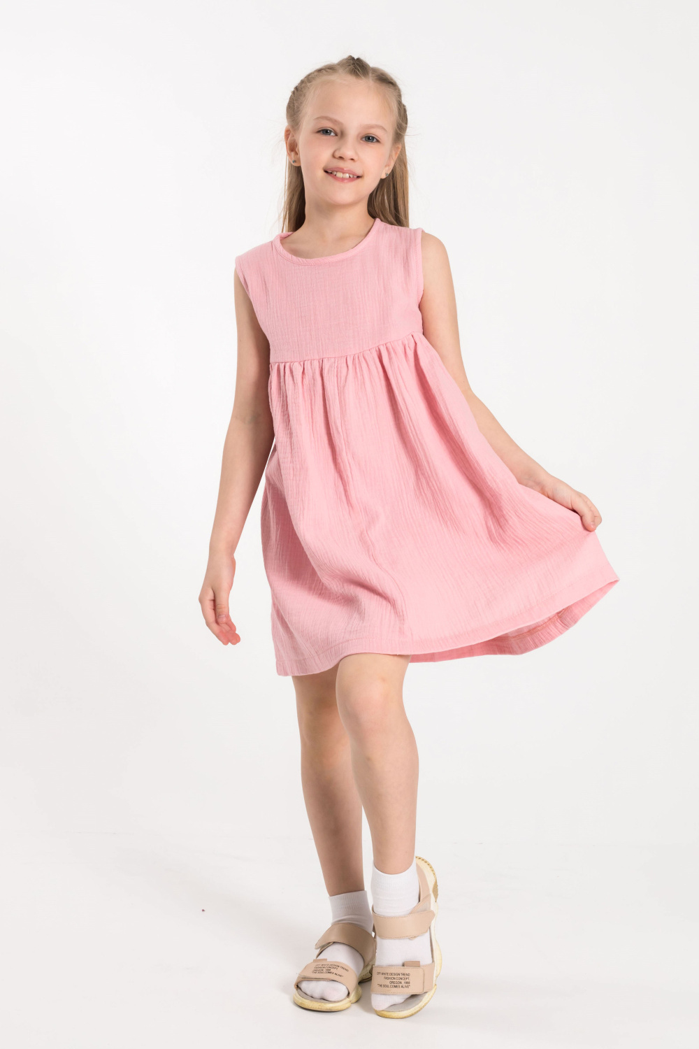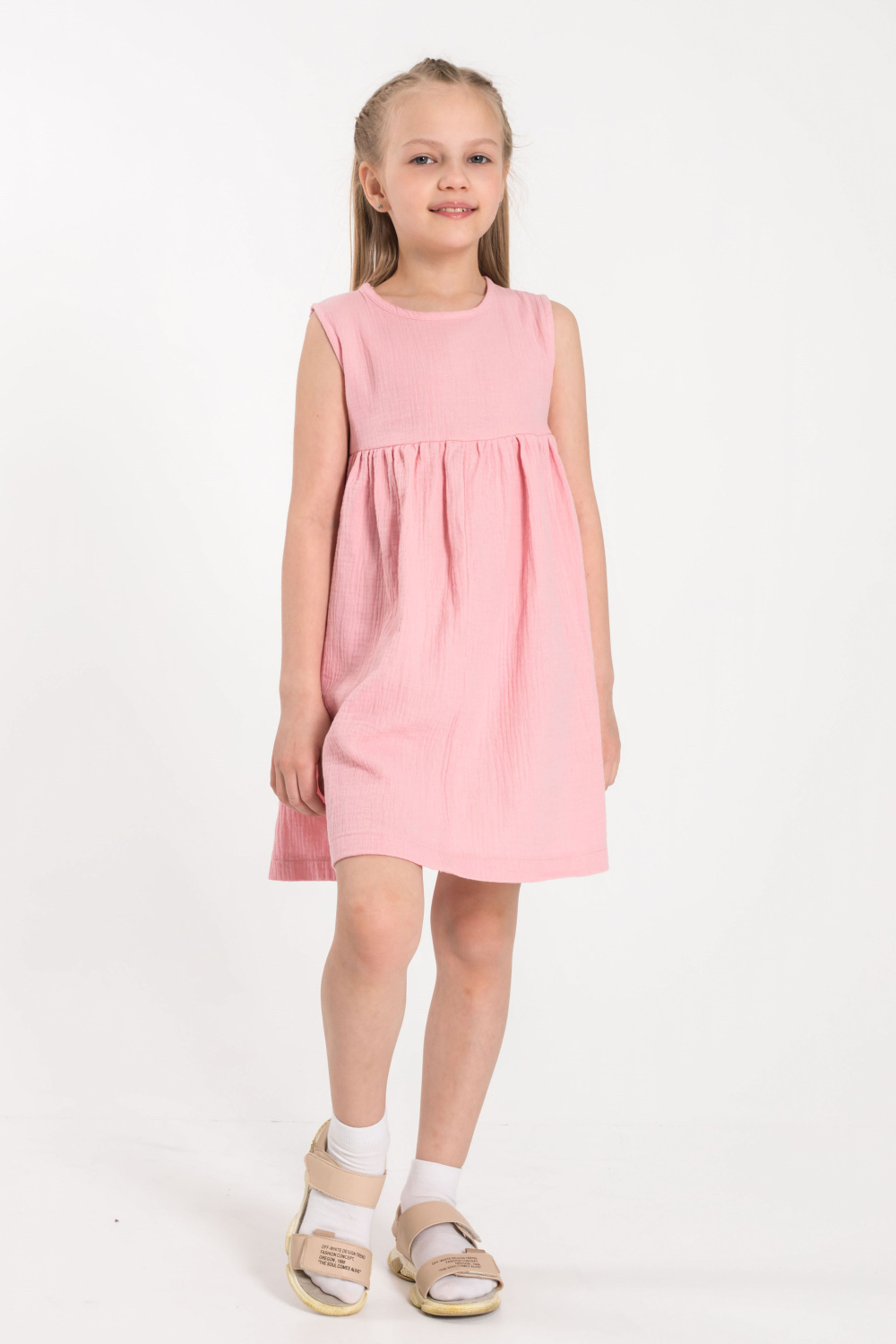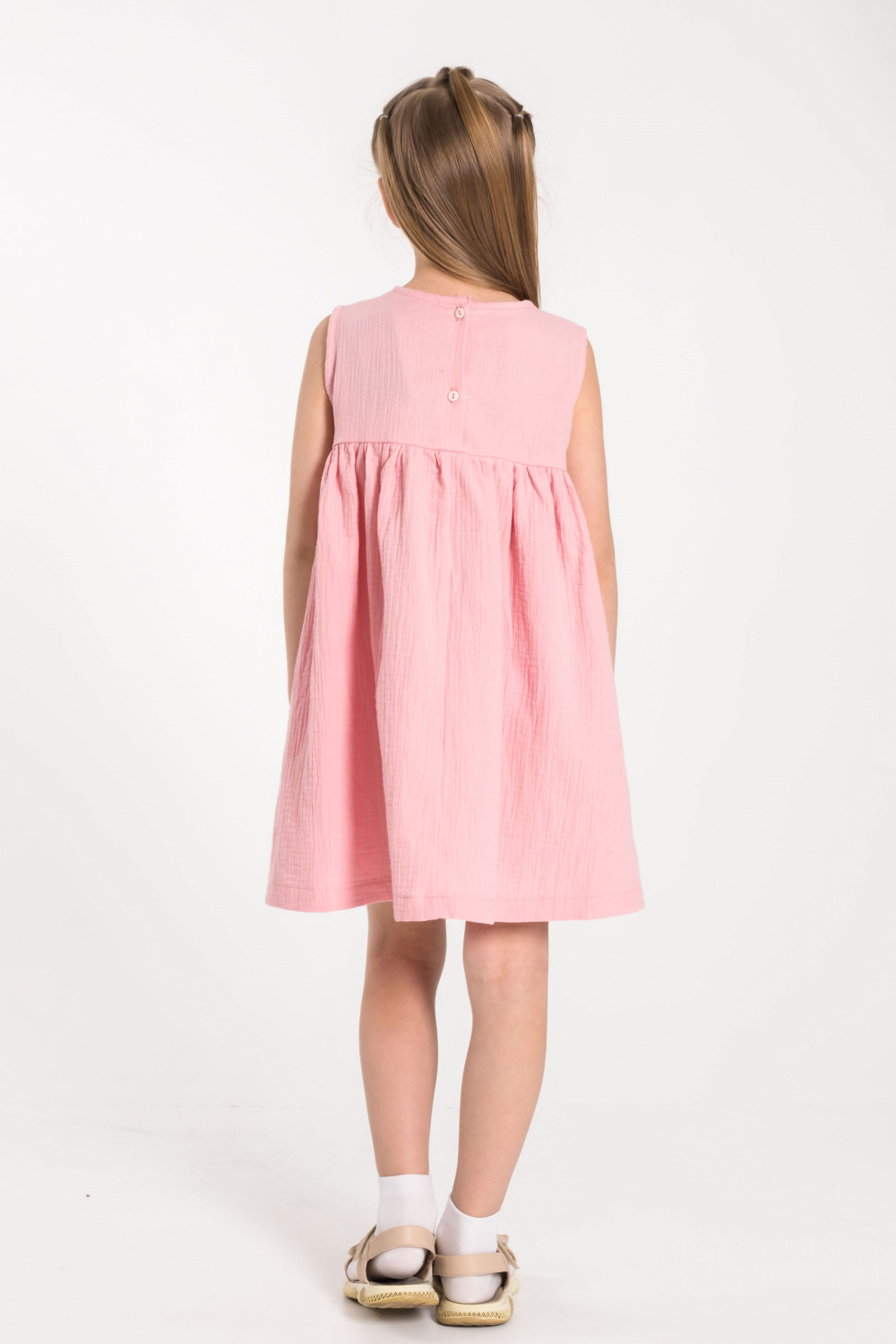 Детское платье из муслина. Сзади застёжка на две пуговицы.