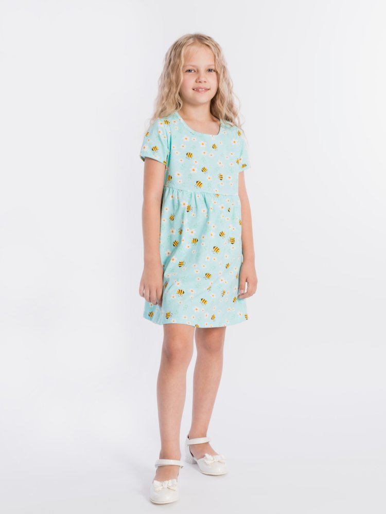 Платье выполнено из кулирки, 100% хлопок. С коротким рукавом и тремя оборками на юбке.
