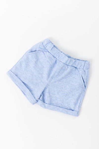 Шорты выполнены из футер петли. Низ шорт оформлен отворотами, пояс на резине, по бокам размещены карманы.