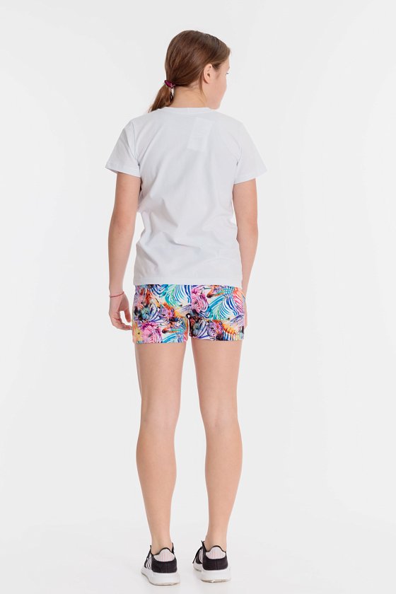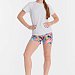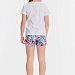 Шорты из футер петли с набивным рисунком. В боковых швах расположены карманы, пояс с резиной внутри.