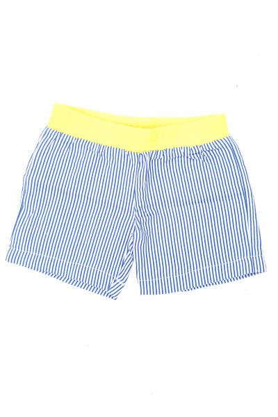 Шорты из джинсовой ткани с набивным рисунком. С отделочным поясом на резине из однотонного трикотажного полотна.