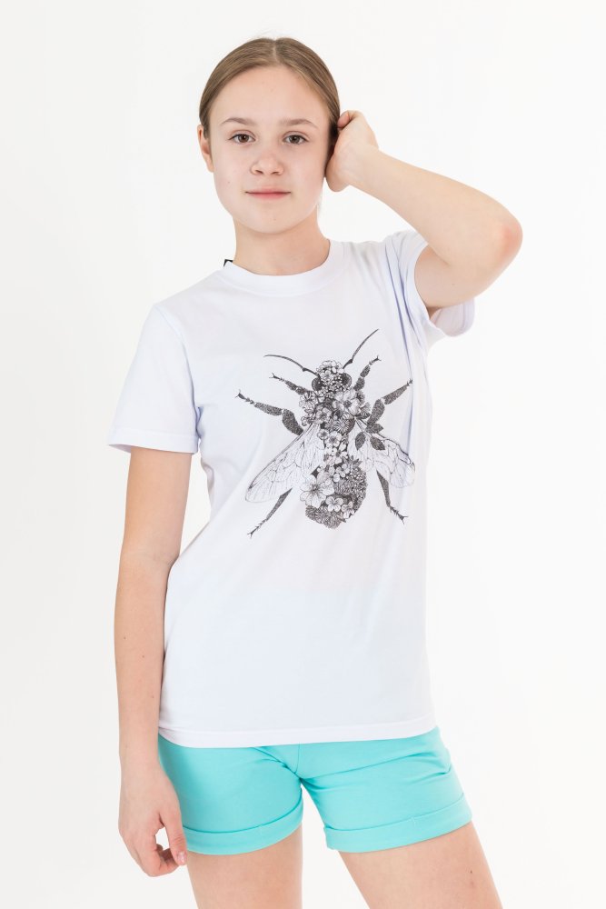 Шорты из джинсовой ткани с набивным рисунком. С отделочным поясом на резине из однотонного трикотажного полотна.