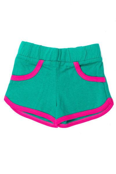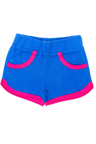 Шорты для девочек выполнены из хлопкового полотна различных расцветок. Пояс шорт на резине, низ и входы в карманы обработаны бейкой контрастного цвета.