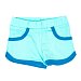 Шорты для девочек выполнены из хлопкового полотна различных расцветок. Пояс шорт на резине, низ и входы в карманы обработаны бейкой контрастного цвета.