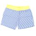 Шорты из джинсовой ткани с набивным рисунком. С отделочным поясом на резине из однотонного трикотажного полотна.