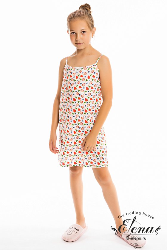 Сорочка на тонких бретелях, выполнена из кулирки, 100% хлопок. Сверху спереди пришит бантик.