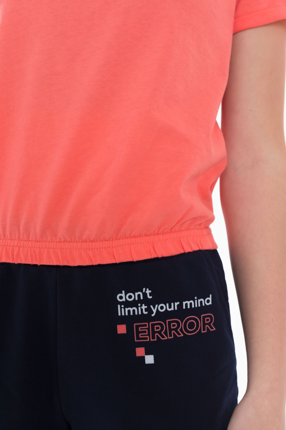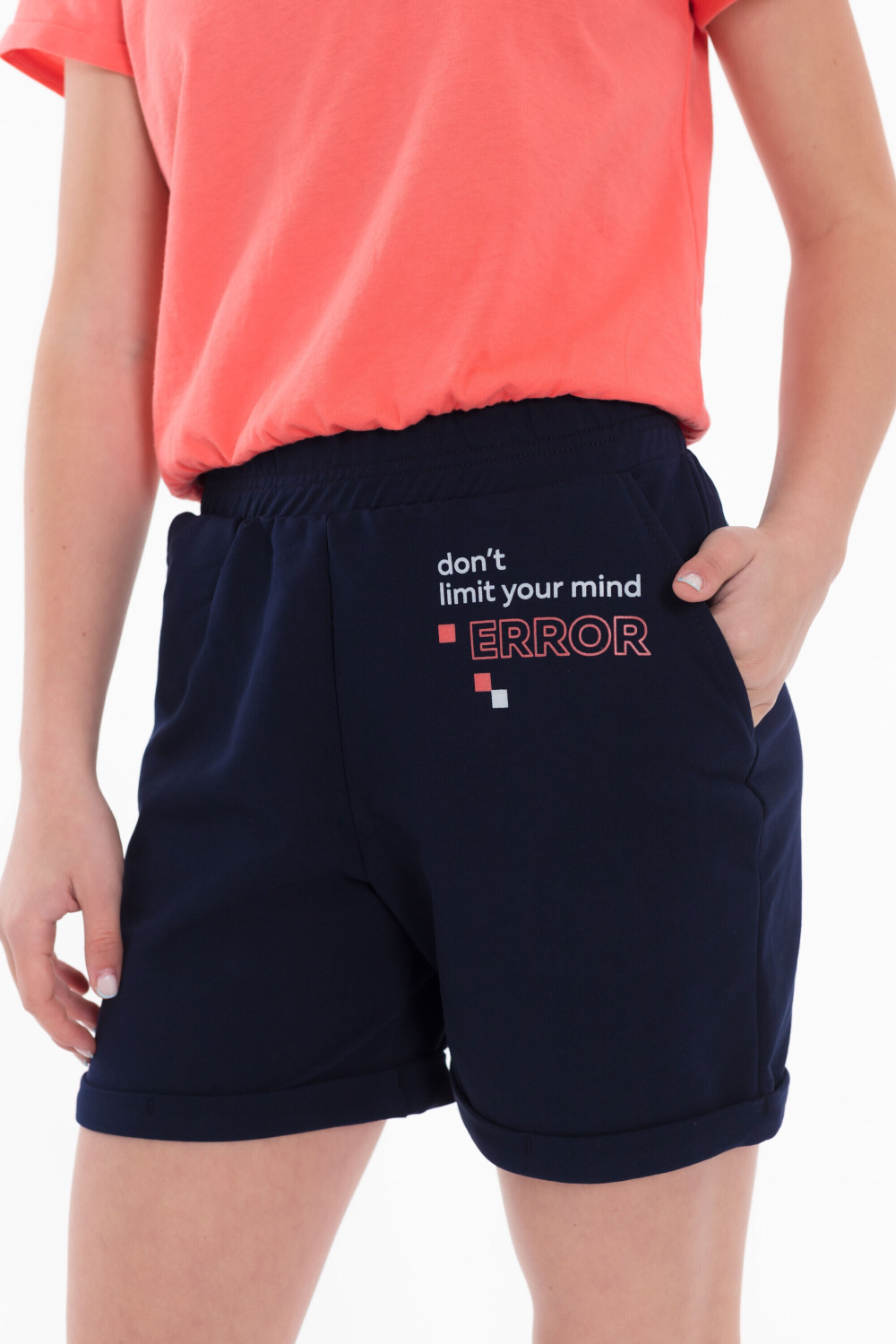 Шорты из футер петли, на передней половинке принт, боковые карманы, притачной пояс и манжеты по низу.