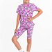 Костюм для девочек из хлопка с добавлением лайкры. Футболка свободная, короткий рукав, круглый вырез горловины. Велосипедки с поясом на резинке.