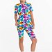 Костюм для девочек из хлопка с добавлением лайкры. Футболка свободная, короткий рукав, круглый вырез горловины. Велосипедки с поясом на резинке.