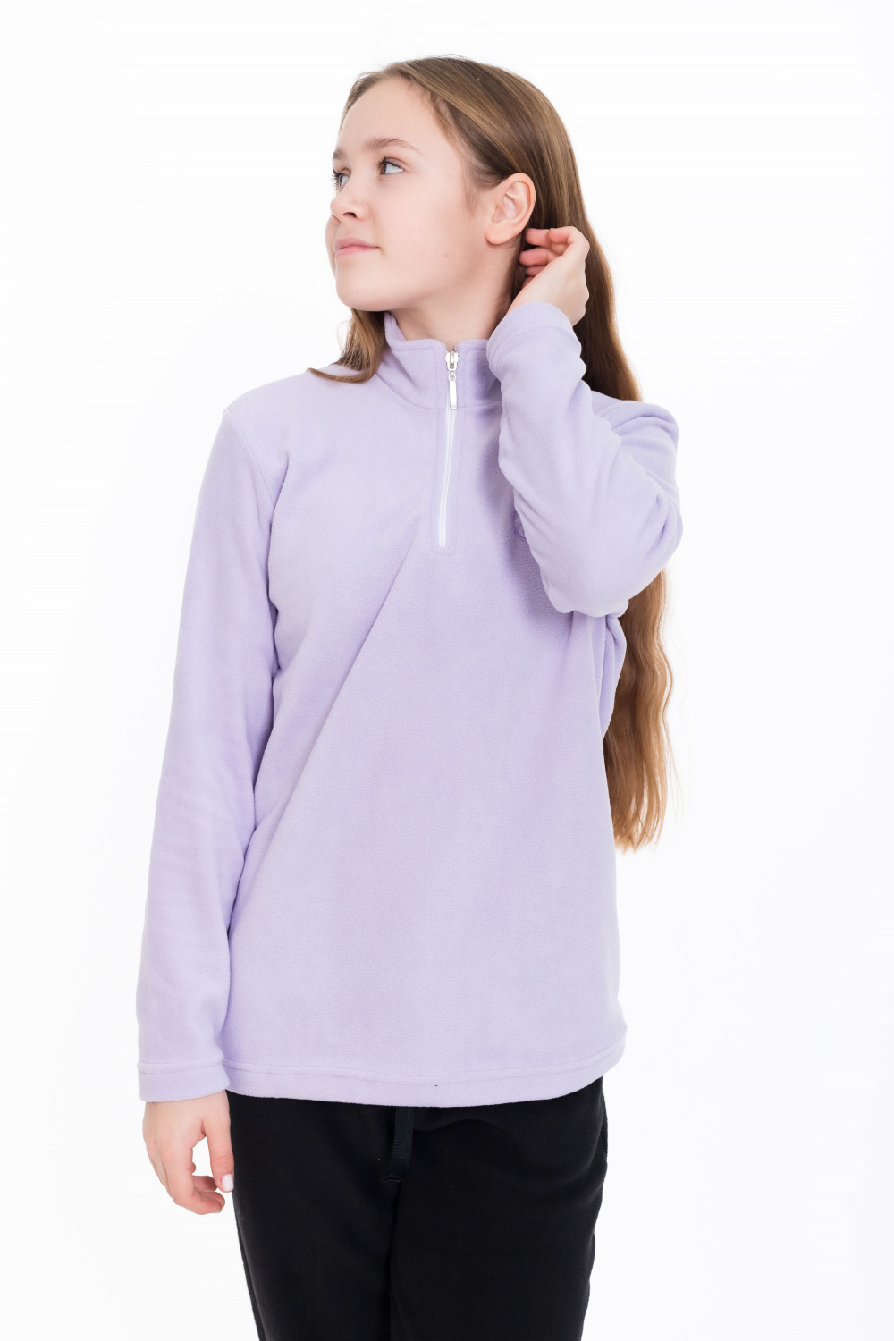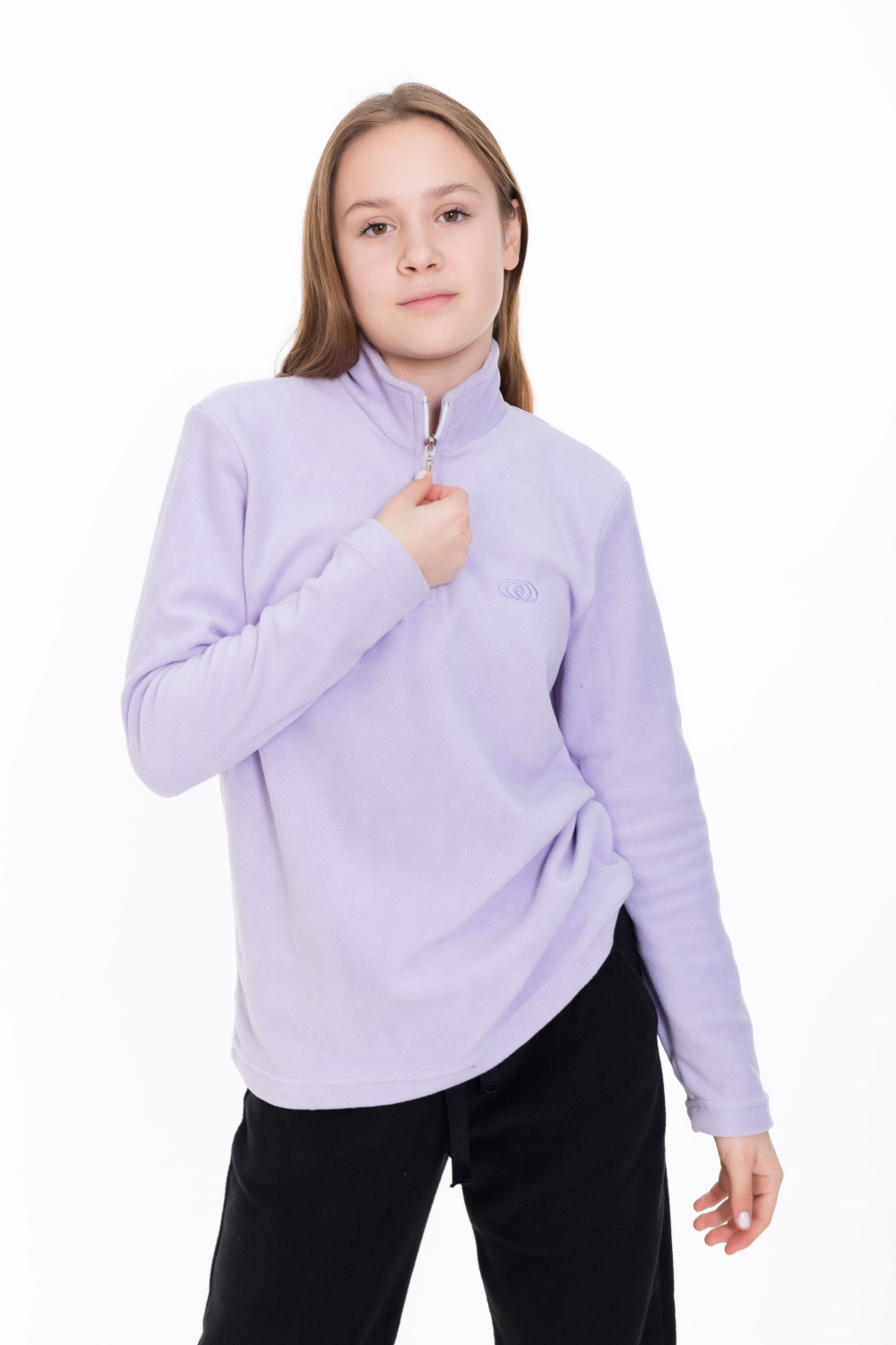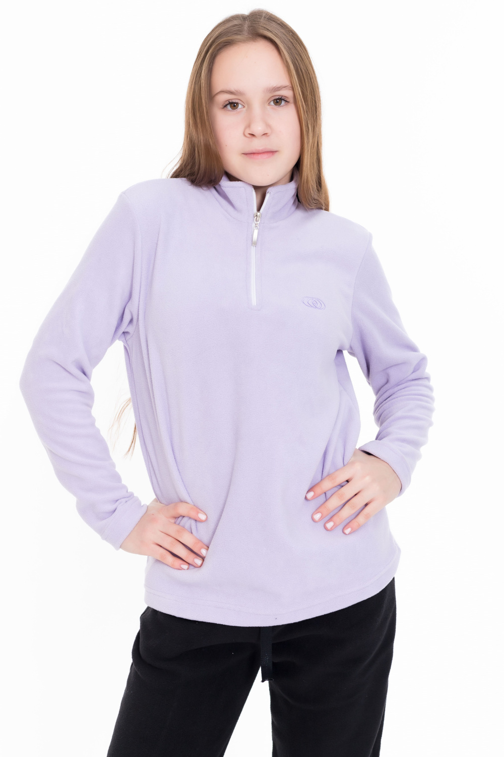 Толстовка для девочки из поларофлиса сиреневого цвета будет отличным выбором для прохладного времени года. Прямой крой обеспечивает комфорт и свободу движений. Воротник-стоечка с молнией защитит от ветра и холода, а вышивка на левой полочке добавит стильный акцент к образу. Длинные рукава обеспечат дополнительное удобство и тепло. Эта толстовка станет отличным вариантом для повседневной носки и активного отдыха.
