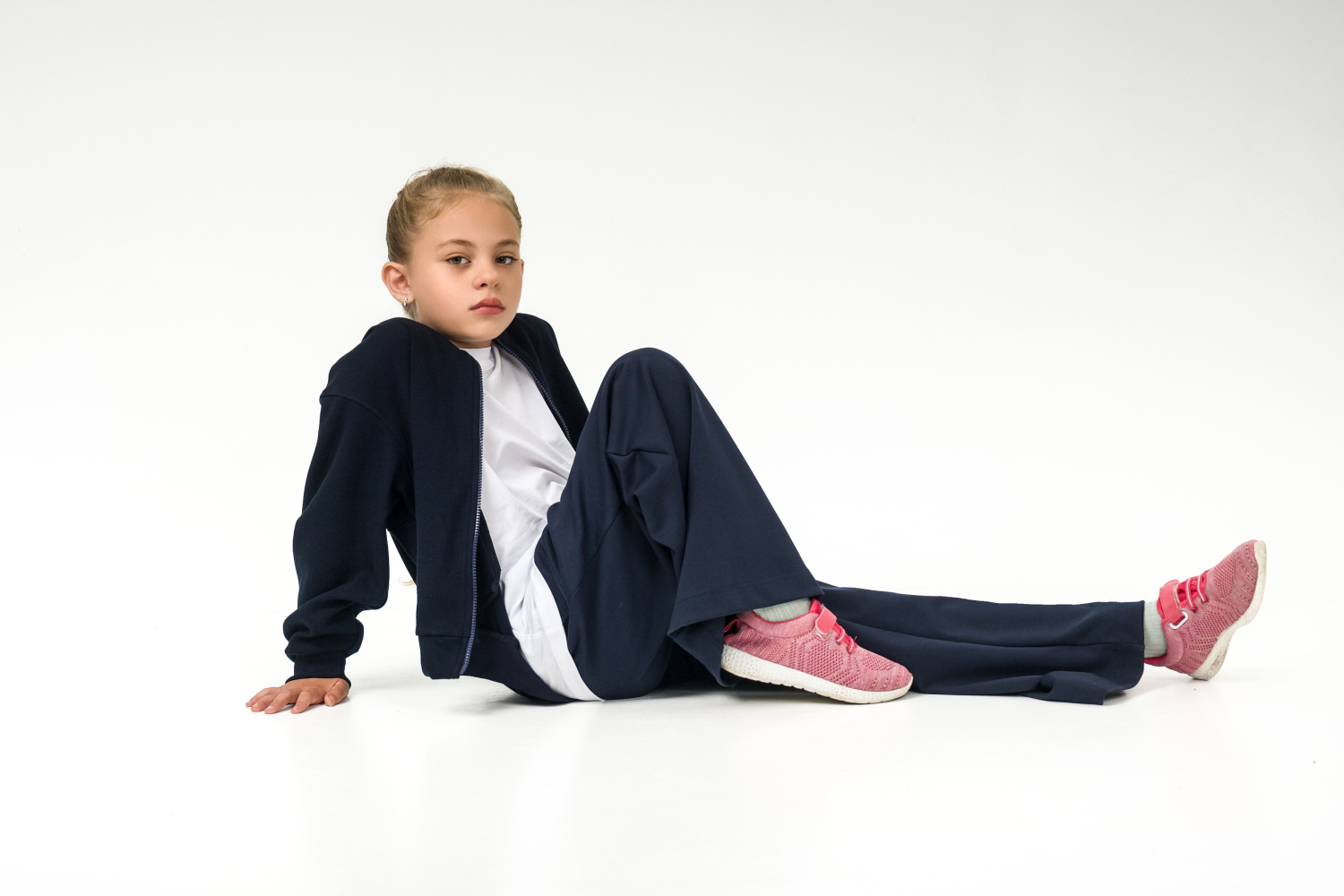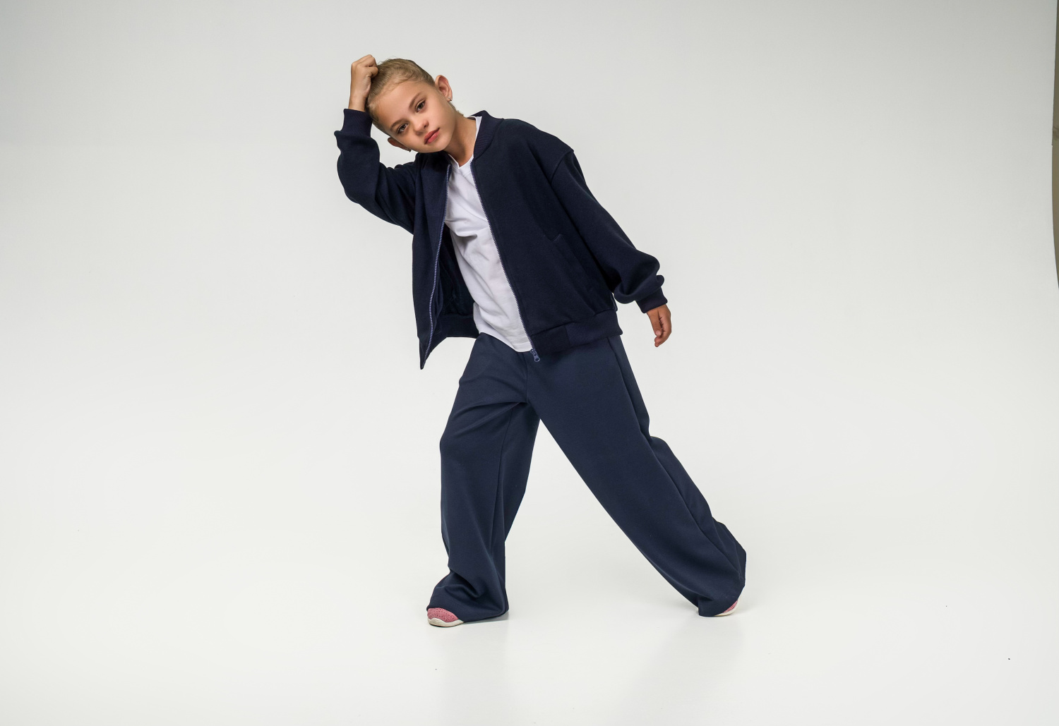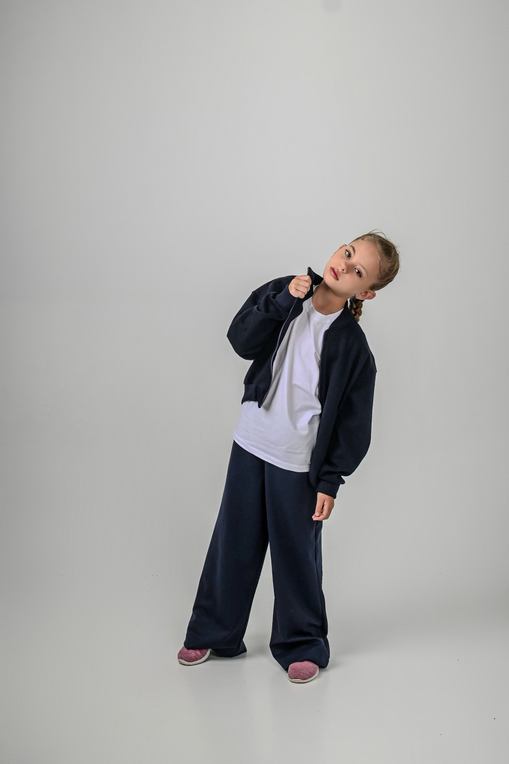 Удобная и стильная детская толстовка-бомбер выполнена из мягкого трикотажного полотна (силаник). Застегивается на молнию, дополнена карманами-листочками. Пояс, манжеты и воротник выполнены из кашкорсе, что обеспечивает комфортную посадку и долговечность. Практичная модель, которая отлично подойдёт для школы, прогулок и повседневной носки.
