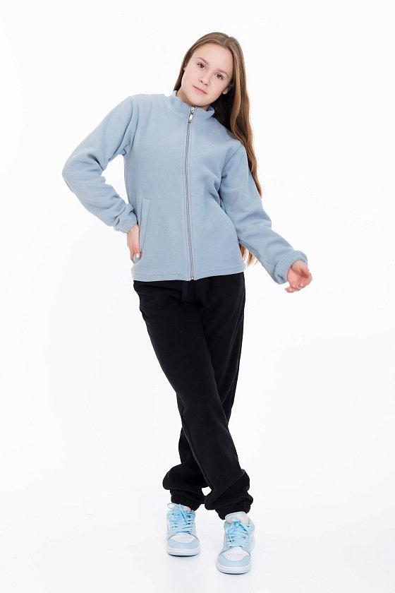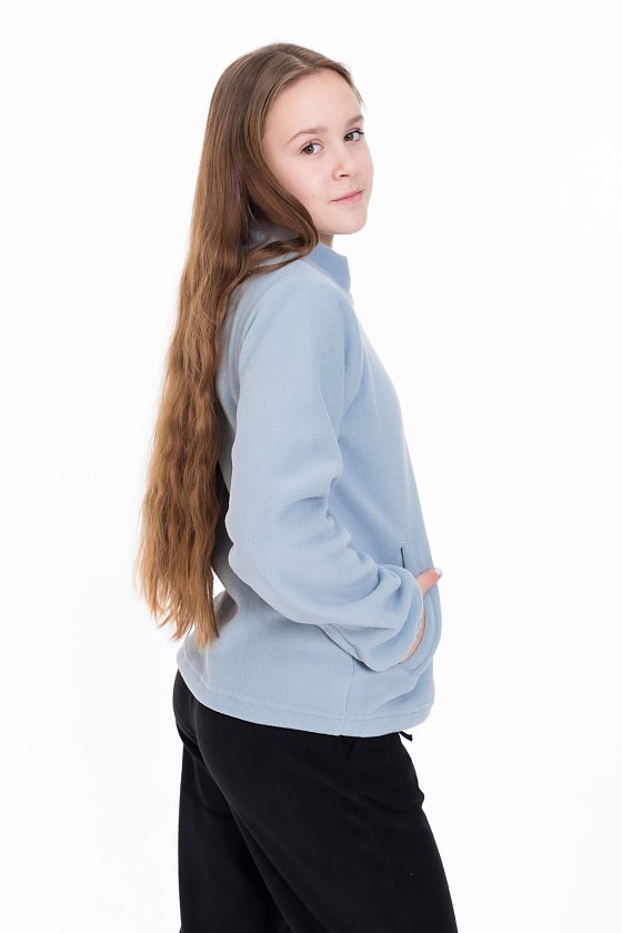 Толстовка для девочки из поларофлиса в серо-голубом цвете станет отличным дополнением к гардеробу. Поларофлис обеспечивает тепло и комфорт в прохладные дни. Прямой крой и центральная застежка на молнии придают изделию классический и стильный вид. Воротник-стоечка и вышивка на левой полочке добавляют интересный акцент образу. Длинные рукава и карманы делают эту толстовку еще более практичной и удобной. Она подойдет для повседневной носки и активного отдыха.