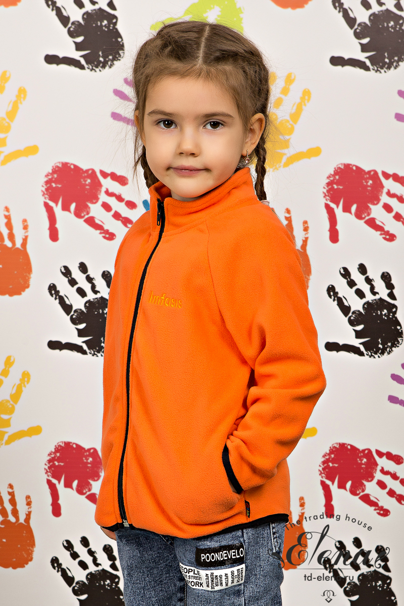 Тёплая и мягкая толстовка из однотонного флиса с застёжкой на молнию. Воротник-стойка. Карманы в боковых швах. Низ рукавов и изделия обработаны отделочной эластичной тесьмой. С левой стороны толстовку украшает вышивка.